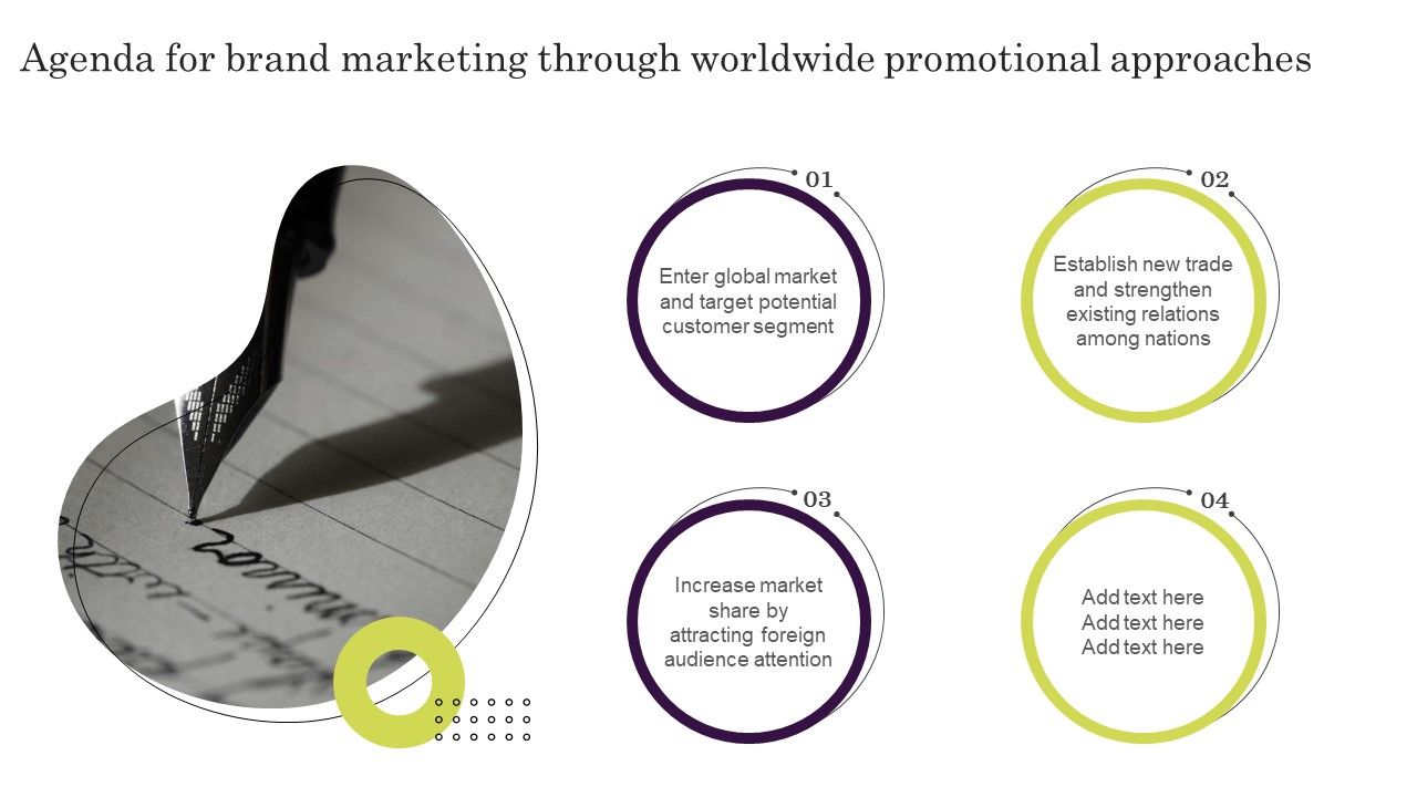 If you are looking for a format to display your unique thoughts, then the professionally designed Agenda For Brand Marketing Through Worldwide Promotional Approaches Slides PDF is the one for you. You can use it as a Google Slides template or a PowerPoint template. Incorporate impressive visuals, symbols, images, and other charts. Modify or reorganize the text boxes as you desire. Experiment with shade schemes and font pairings. Alter, share or cooperate with other people on your work. Download Agenda For Brand Marketing Through Worldwide Promotional Approaches Slides PDF and find out how to give a successful presentation. Present a perfect display to your team and make your presentation unforgettable.
