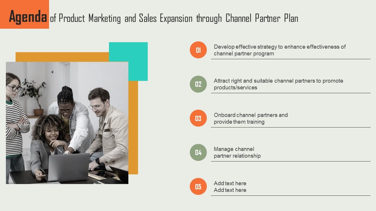 Agenda Of Product Marketing And Sales Expansion Through Channel Partner Plan Slides PDF with all 9 slides: