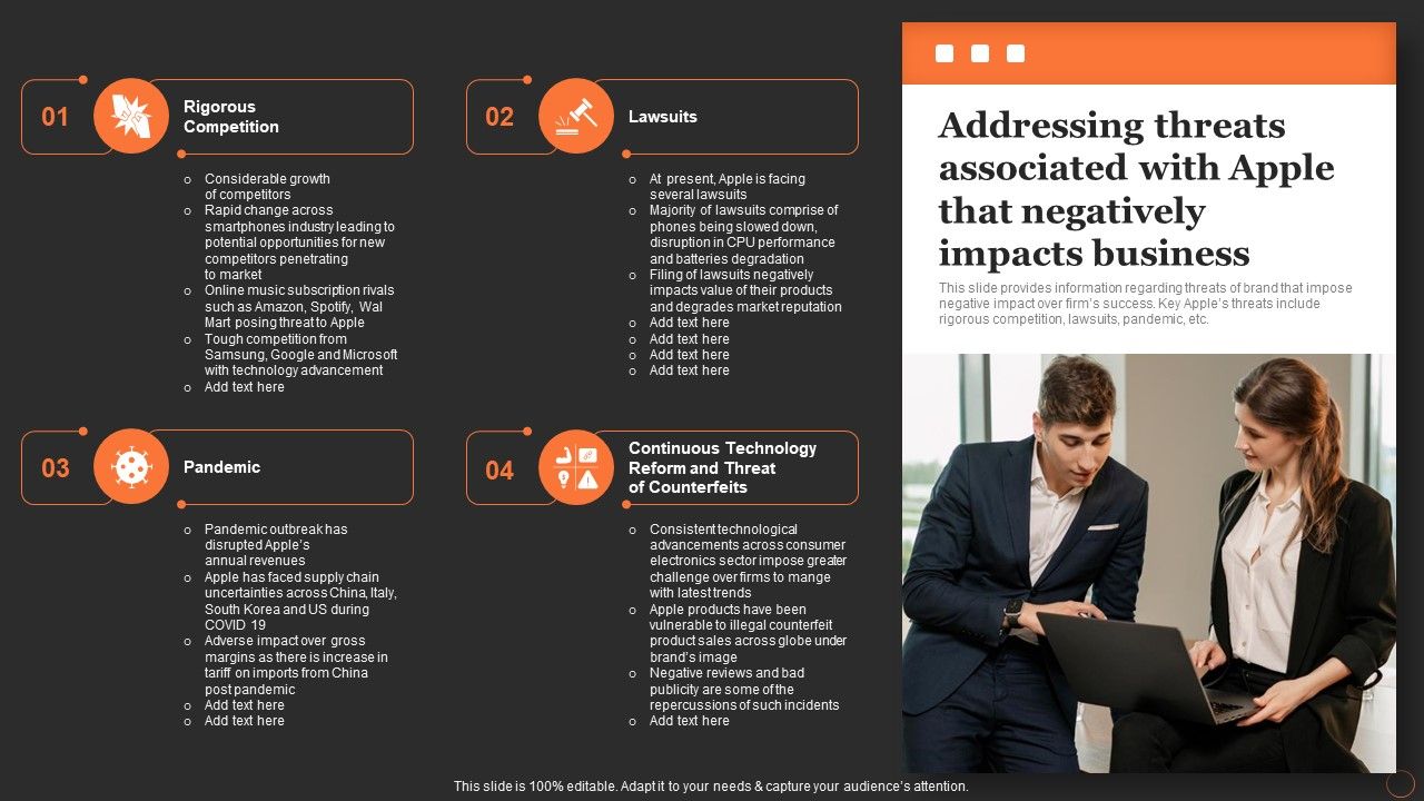 Apples Strategy To Achieve Top Brand Value Position Addressing Threats Associated With Apple That Negatively Clipart PDF with all 9 slides: