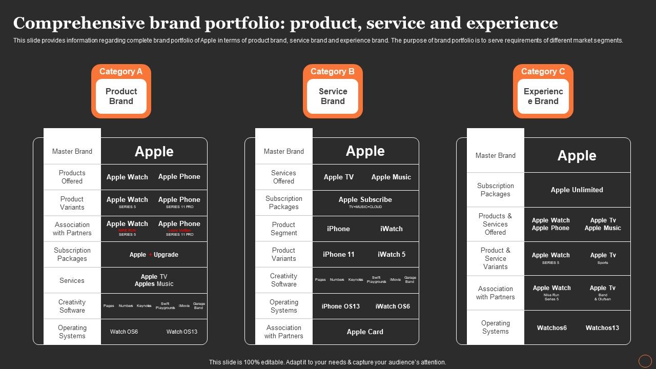 Apples Strategy To Achieve Top Brand Value Position Comprehensive Brand Portfolio Product Service And Experience Formats PDF with all 9 slides: