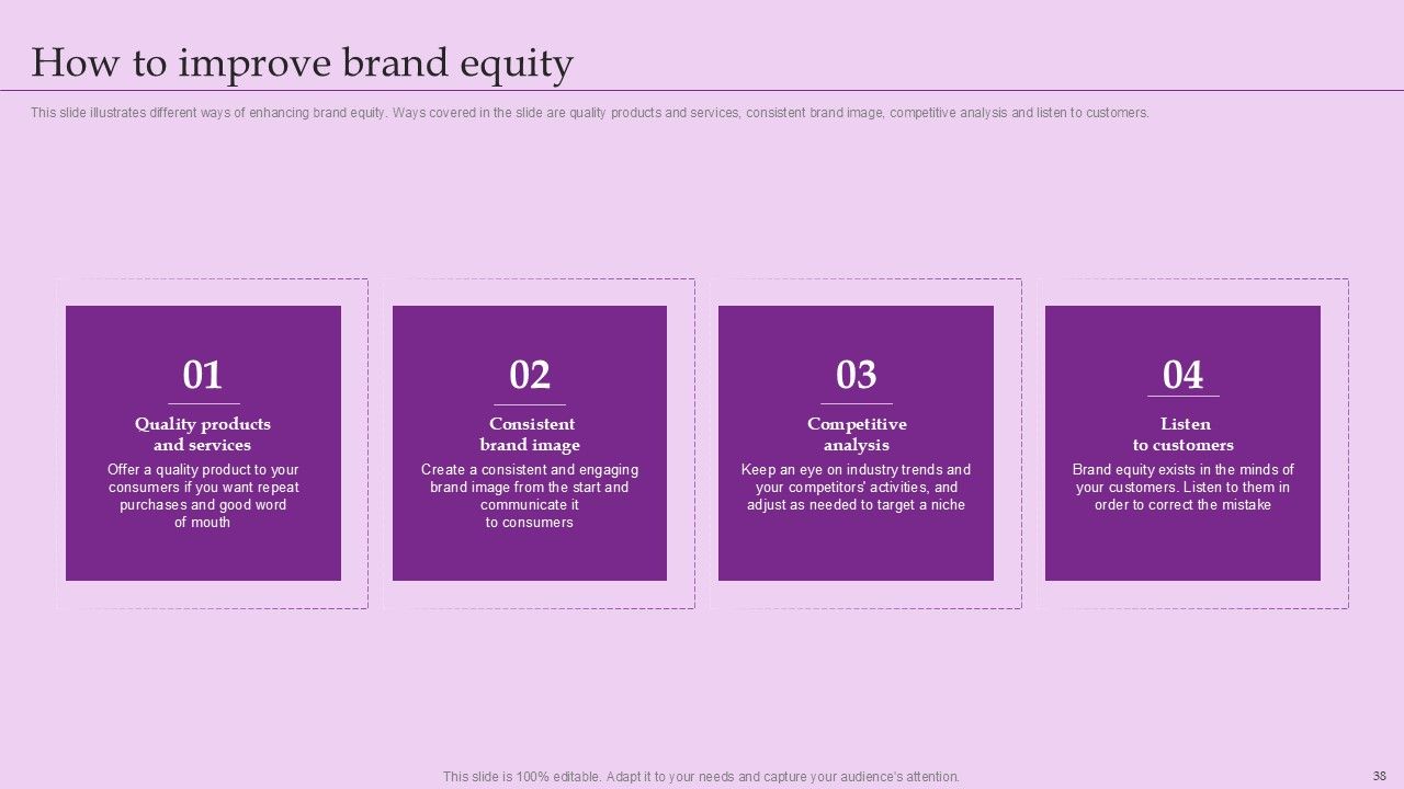 Create a proper and aligned organizational framework that meets your business expectations. Deploy this ready to use Brand And Equity Evaluation Techniques And Procedures Ppt PowerPoint Presentation Complete Deck With Slides and use it to design a structure for your company that showcases the quality of your management, and more. Use this eighty eight Slide complete deck to showcase essential components of your organizational framework. Present this PPT Design to your stakeholders to draw an organizational framework that supports your vision and goals. Find relevant icons as well on a download, as this this presentation is completely editable and 100 precent customizable. Get it now.
