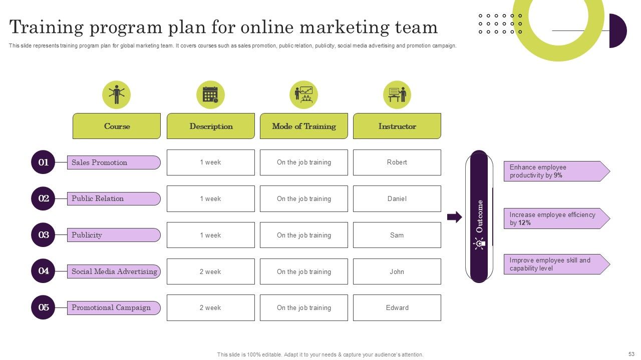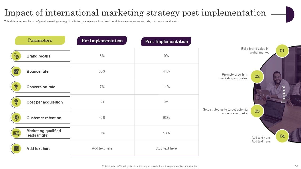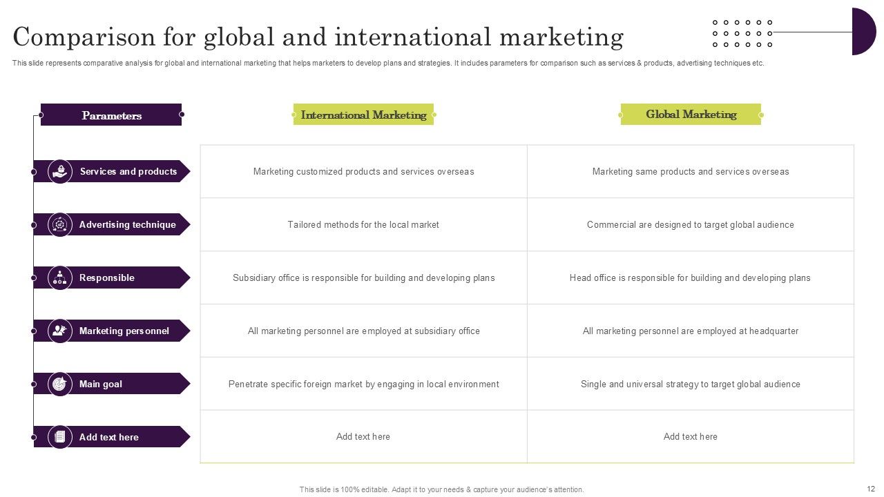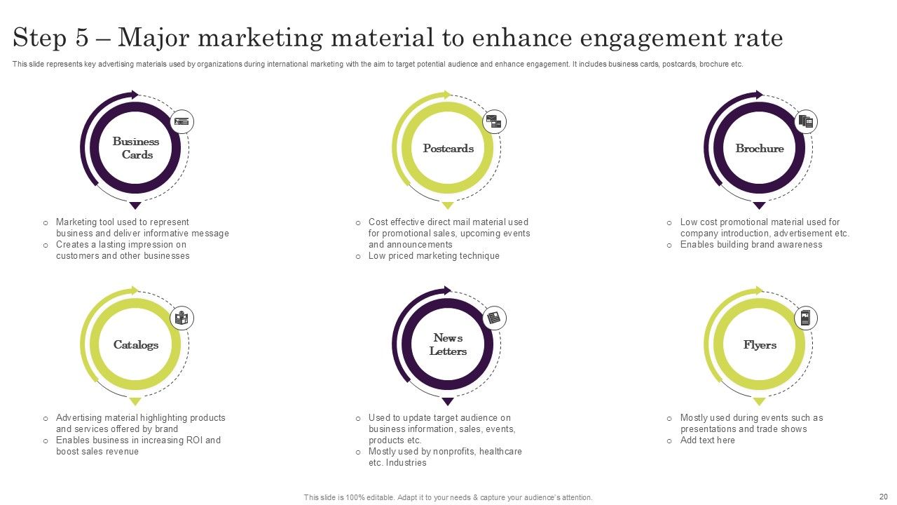 Take advantage of this well-researched and professionally-designed Brand Marketing Through Worldwide Promotional Approaches Ppt PowerPoint Presentation Complete Deck With Slides to ace your next business meeting. Use this PPT complete deck to impress the management with your ideas for business growth and revenue increase. Use the seventy three slide Template Bundle to leave no stone unturned as you present each step of your process. Employ the visual tools within the slides such as graphs, charts, and tables to ensure that the audience can never look away from the presentation. With attractive visuals, easy to understand structure, and your knowledge, your presentation will have the attention it deserves. Download this PPT Template from the link below.