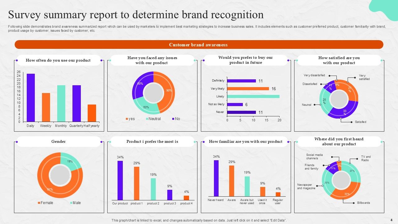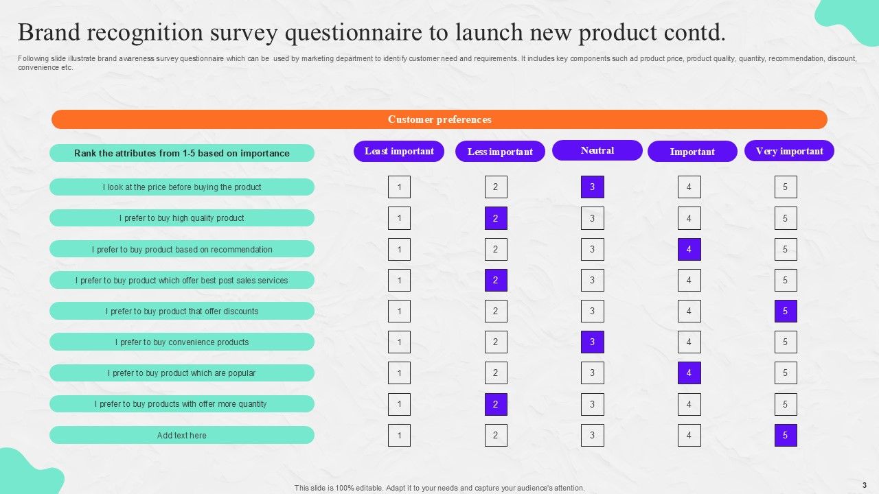 If designing a presentation takes a lot of your time and resources and you are looking for a better alternative, then this Brand Recognition Survey Ppt PowerPoint Presentation Complete Deck With Slides Survey is the right fit for you. This is a prefabricated set that can help you deliver a great presentation on the topic. All the six slides included in this sample template can be used to present a birds-eye view of the topic. These slides are also fully editable, giving you enough freedom to add specific details to make this layout more suited to your business setting. Apart from the content, all other elements like color, design, theme are also replaceable and editable. This helps in designing a variety of presentations with a single layout. Not only this, you can use this PPT design in formats like PDF, PNG, and JPG once downloaded. Therefore, without any further ado, download and utilize this sample presentation as per your liking.