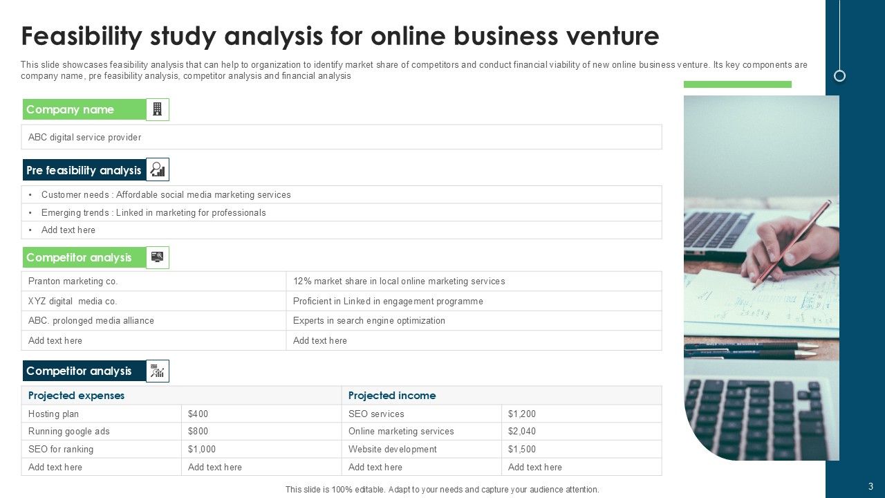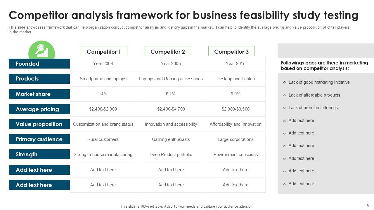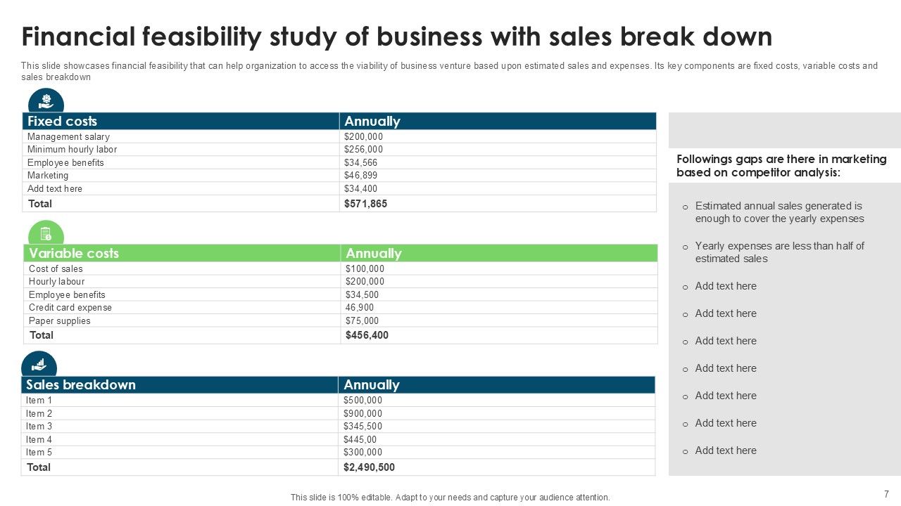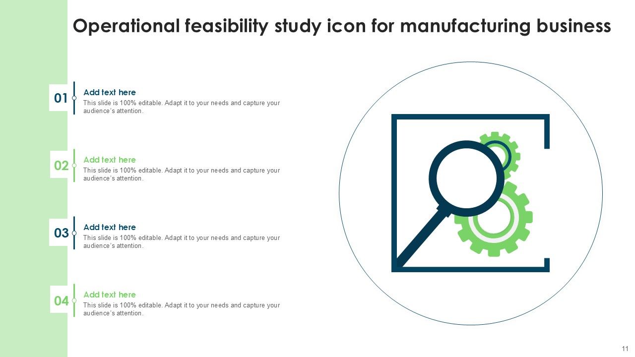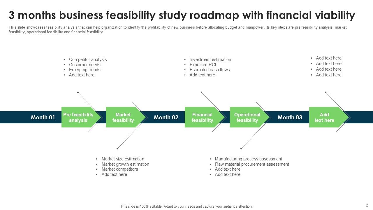Improve your presentation delivery using this Business Feasibility Study Ppt PowerPoint Presentation Complete Deck With Slides. Support your business vision and objectives using this well-structured PPT deck. This template offers a great starting point for delivering beautifully designed presentations on the topic of your choice. Comprising twelve this professionally designed template is all you need to host discussion and meetings with collaborators. Each slide is self-explanatory and equipped with high-quality graphics that can be adjusted to your needs. Therefore, you will face no difficulty in portraying your desired content using this PPT slideshow. This PowerPoint slideshow contains every important element that you need for a great pitch. It is not only editable but also available for immediate download and utilization. The color, font size, background, shapes everything can be modified to create your unique presentation layout. Therefore, download it now.