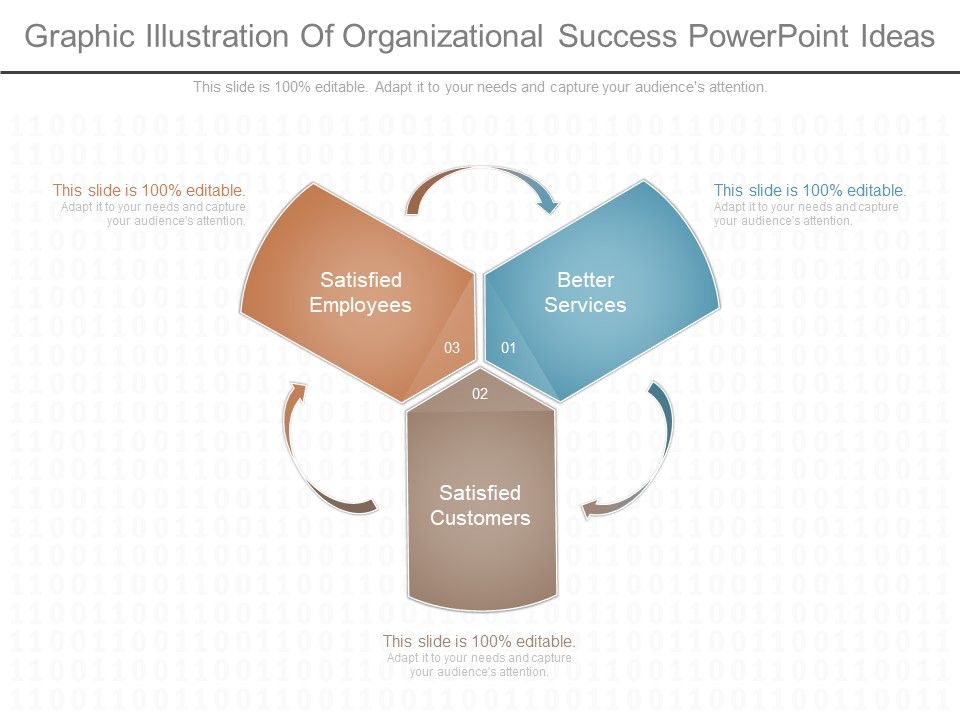 This is a graphic illustration of organizational success powerpoint ideas. This is a three stage process. The stages in this process are satisfied employees, better services, satisfied customers.