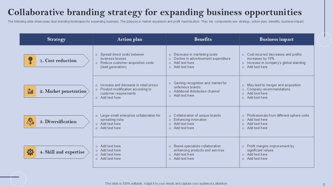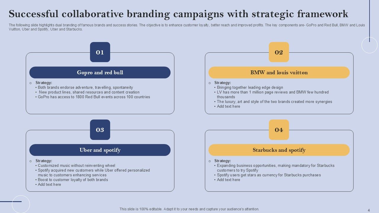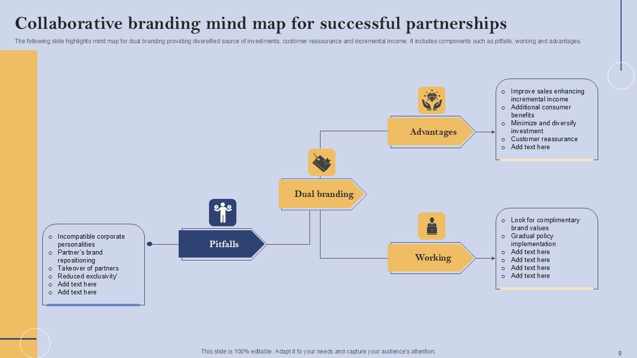 Boost your confidence and team morale with this well-structured Collaborative Branding Ppt PowerPoint Presentation Complete Deck With Slides. This prefabricated set gives a voice to your presentation because of its well-researched content and graphics. Our experts have added all the components very carefully, thus helping you deliver great presentations with a single click. Not only that, it contains a set of twelve slides that are designed using the right visuals, graphics, etc. Various topics can be discussed, and effective brainstorming sessions can be conducted using the wide variety of slides added in this complete deck. Apart from this, our PPT design contains clear instructions to help you restructure your presentations and create multiple variations. The color, format, design anything can be modified as deemed fit by the user. Not only this, it is available for immediate download. So, grab it now.