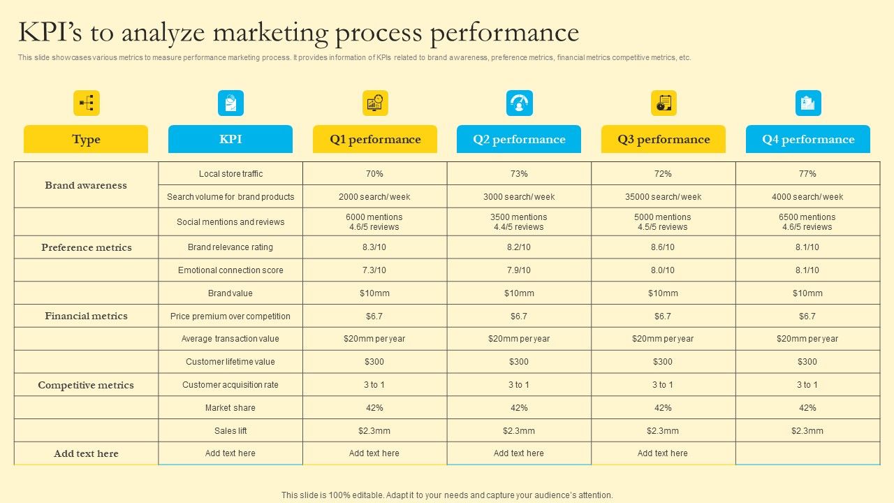 Comprehensive Guide For Sales And Advertising Processes Kpis To Analyze Marketing Process Performance Professional PDF