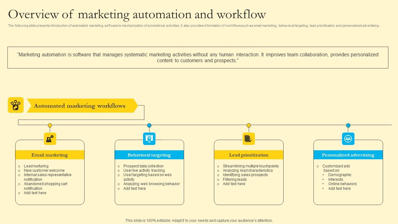 Comprehensive Guide For Sales And Advertising Processes Overview Of Marketing Automation And Workflow Infographics PDF