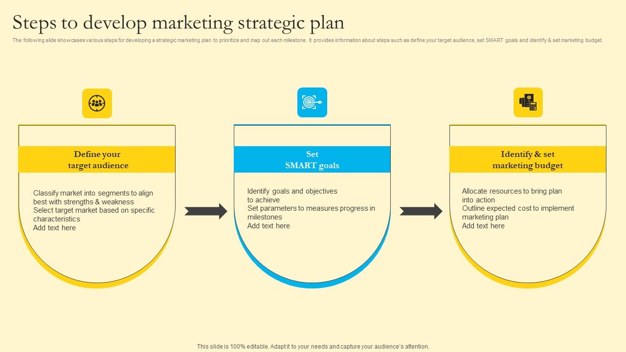 Comprehensive Guide For Sales And Advertising Processes Steps To Develop Marketing Strategic Plan Brochure PDF