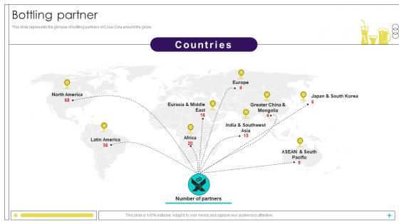 This slide represents the glimpse of bottling partners of Coca-Cola around the globe. Want to ace your presentation in front of a live audience Our Bottling Partner Beverage Manufacturer Company Profile Ppt Slides CP SS V can help you do that by engaging all the users towards you. Slidegeeks experts have put their efforts and expertise into creating these impeccable powerpoint presentations so that you can communicate your ideas clearly. Moreover, all the templates are customizable, and easy-to-edit and downloadable. Use these for both personal and commercial use.