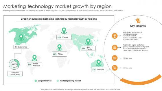 Following slide provides insights into marketing tech growth by different regions. It includes key regions such as North America, South America, Africa, Europe, Asia, and Oceania.Do you have an important presentation coming up Are you looking for something that will make your presentation stand out from the rest Look no further than Marketing Technology Market Growth By Region Comprehensive Guide For Marketing Technology. With our professional designs, you can trust that your presentation will pop and make delivering it a smooth process. And with Slidegeeks, you can trust that your presentation will be unique and memorable. So why wait Grab Marketing Technology Market Growth By Region Comprehensive Guide For Marketing Technology today and make your presentation stand out from the rest