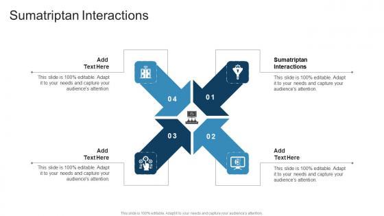 Presenting our innovatively designed set of slides titled Sumatriptan Interactions In Powerpoint And Google Slides Cpb. This completely editable PowerPoint graphic exhibits Sumatriptan Interactions that will help you convey the message impactfully. It can be accessed with Google Slides and is available in both standard screen and widescreen aspect ratios. Apart from this, you can download this well-structured PowerPoint template design in different formats like PDF, JPG, and PNG. So, click the download button now to gain full access to this PPT design.