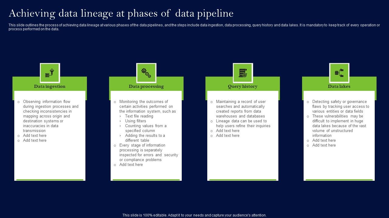 Data Lineage Methods Achieving Data Lineage At Phases Of Data Pipeline Topics PDF with all 9 slides: