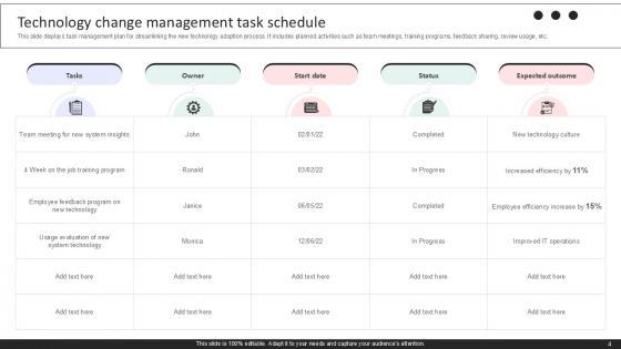 This Organizational Change Management Powerpoint Ppt Template Bundles is a primer on how to capitalize on business opportunities through planning, innovation, and market intelligence. The content-ready format of the complete deck will make your job as a decision-maker a lot easier. Use this ready-made PowerPoint Template to help you outline an extensive and legible plan to capture markets and grow your company on the right path, at an exponential pace. What is even more amazing is that this presentation is completely editable and 100 percent customizable. This Technology Change Management, Change Management Task Sheet, ERP Change Management-slide complete deck helps you impress a roomful of people with your expertise in business and even presentation. Craft such a professional and appealing presentation for that amazing recall value. Download now.