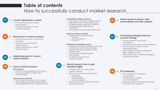 This How To Successfully Conduct Market Research Powerpoint Presentation Slides is a primer on how to capitalize on business opportunities through planning, innovation, and market intelligence. The content-ready format of the complete deck will make your job as a decision-maker a lot easier. Use this ready-made PowerPoint Template to help you outline an extensive and legible plan to capture markets and grow your company on the right path, at an exponential pace. What is even more amazing is that this presentation is completely editable and 100 percent customizable. This Consumer Insights, Market Analysis, Industry Trends, Competitor Research, Audience Segmentation, Demand Forecasting, Product Positioning-slide complete deck helps you impress a roomful of people with your expertise in business and even presentation. Craft such a professional and appealing presentation for that amazing recall value. Download now.