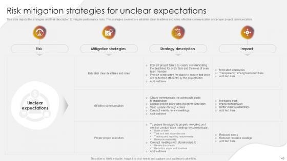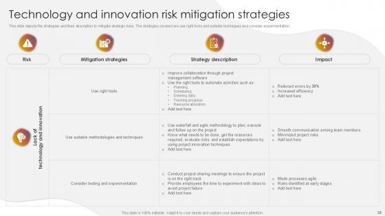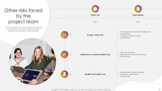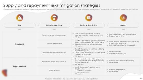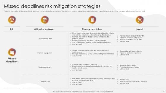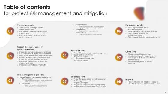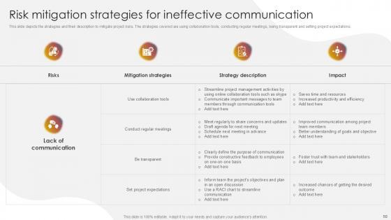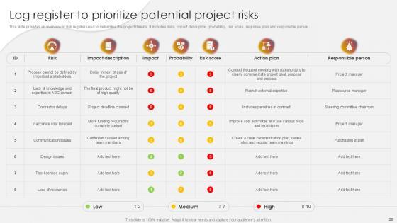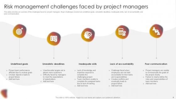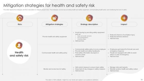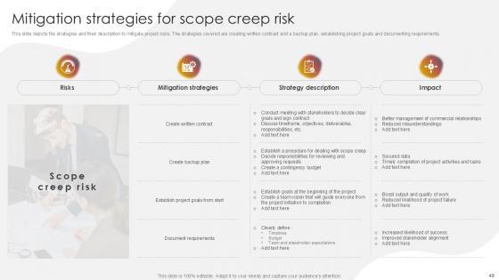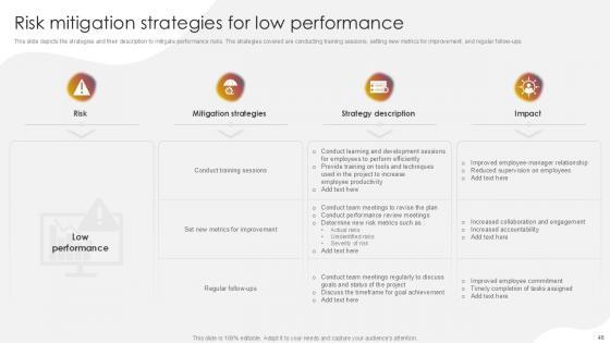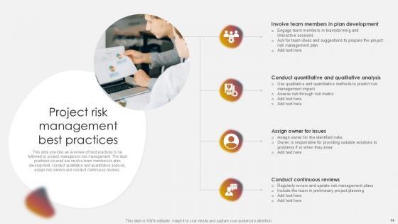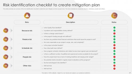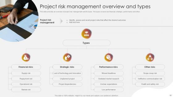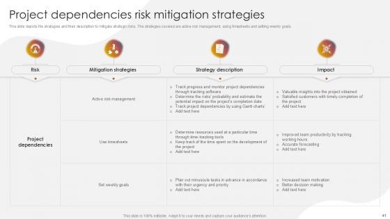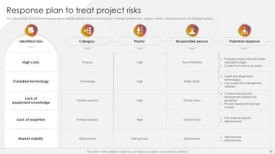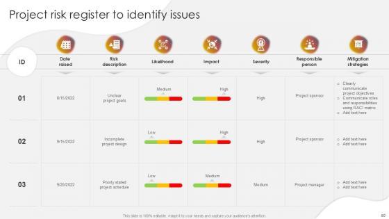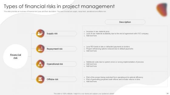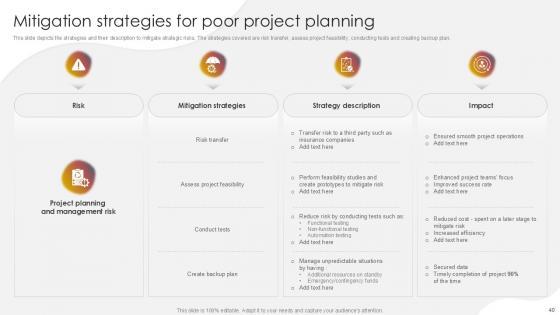 You will save yourself your energy and hours of time when you choose to use this impactful PowerPoint Deck. This Project Risk Management And Mitigation Powerpoint Presentation Slides has been tailor-made to your business needs which ensures that you will always be prepared for that next meeting. Worry can not touch you when you present in your area of expertise using this PPT Template Bundle. With a modern design and easy to follow structure, this PowerPoint Presentation has Issue Management, Financial Risks, Operational Risks, Issue Prioritization, Uncertainty Management, Project Resilience Planning-slides, which ensures that you can cover you need to without much work. Create your next presentation using this PPT Theme to deliver a memorable performance.