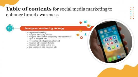 Want to ace your presentation in front of a live audience Our Table Of Contents Social Media Marketing To Enhance Brand Awareness MKT SS V can help you do that by engaging all the users towards you. Slidegeeks experts have put their efforts and expertise into creating these impeccable powerpoint presentations so that you can communicate your ideas clearly. Moreover, all the templates are customizable, and easy-to-edit and downloadable. Use these for both personal and commercial use.