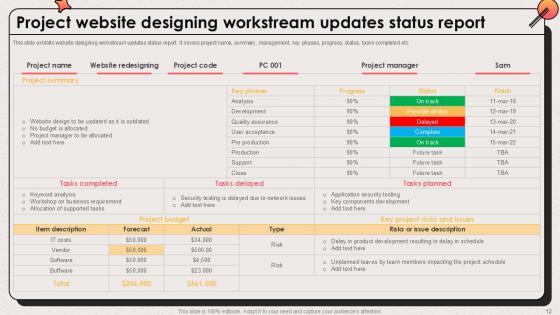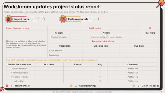 This Project Status, Deliverables, Status Report, Update Timeline, Members Workstream-slide Workstream Updates Powerpoint Ppt Template Bundles is your content ready tool to impress the stakeholders with your business planning and its manner of execution. Showcase your ideas and how you plan to make them real in detail with this PPT Template Bundle. The slides have the conceptual bandwidth to present the crucial aspects of your plan, such as funding, marketing, resource allocation, timeline, roadmap, and more. When you present your plans with this PPT Layout, the stakeholders are sure to come on board because you will be able to present a succinct, thought-out, winning project. Download this Complete Deck now to take control into your hands. The 100 percent customizable offer is just too good to be resisted.