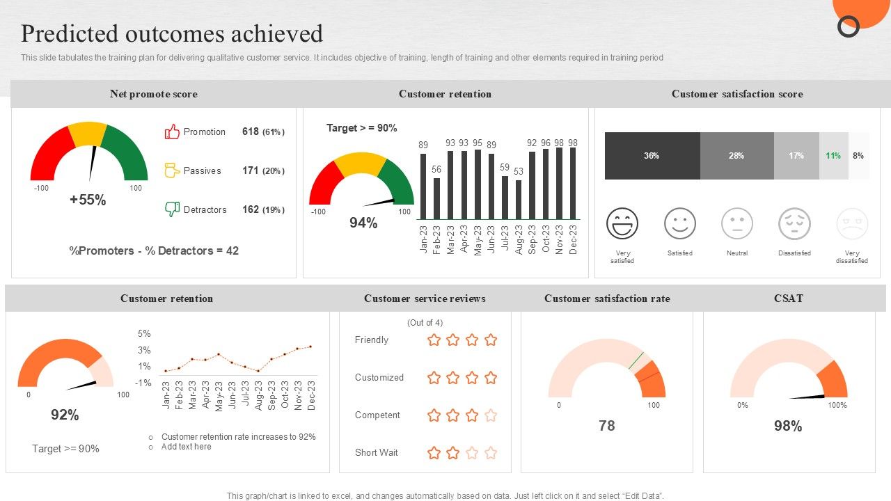 This slide tabulates the training plan for delivering qualitative customer service. It includes objective of training, length of training and other elements required in training period. This modern and well arranged Enhancing Buyer Journey Predicted Outcomes Achieved Guidelines PDF provides lots of creative possibilities. It is very simple to customize and edit with the Powerpoint Software. Just drag and drop your pictures into the shapes. All facets of this template can be edited with Powerpoint no extra software is necessary. Add your own material, put your images in the places assigned for them, adjust the colors, and then you can show your slides to the world, with an animated slide included.