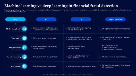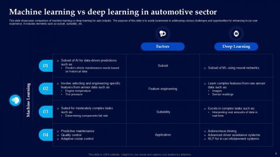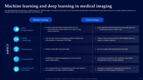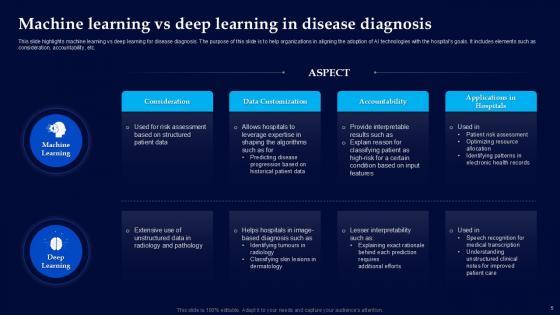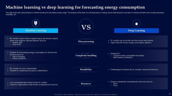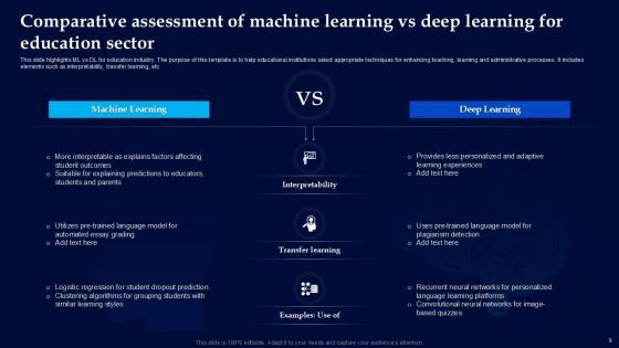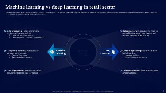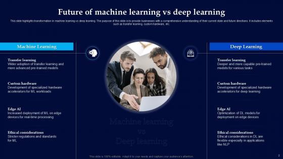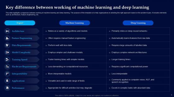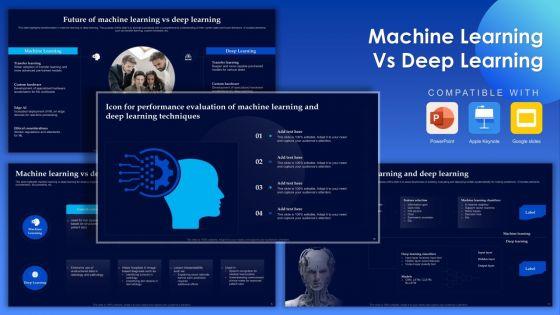 Take advantage of this well-researched and professionally-designed Machine Learning Vs Deep Learning Powerpoint Ppt Template Bundles to ace your next business meeting. Use this PPT complete deck to impress the management with your ideas for business growth and revenue increase. Use the Machine learning versus deep learning, ML vs DL comparison, Deep learning and machine learning differences, ML vs DL explained, Machine learning vs deep learning overview-slide Template Bundle to leave no stone unturned as you present each step of your process. Employ the visual tools within the slides such as graphs, charts, and tables to ensure that the audience can never look away from the presentation. With attractive visuals, easy to understand structure, and your knowledge, your presentation will have the attention it deserves. Download this PPT Template from the link below.
