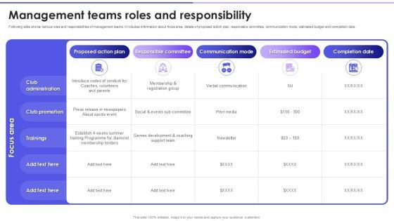 Retrieve professionally designed Management Teams Roles And Responsibility Summer Ppt Powerpoint Presentation Pictures Icons to effectively convey your message and captivate your listeners. Save time by selecting pre-made slideshows that are appropriate for various topics, from business to educational purposes. These themes come in many different styles, from creative to corporate, and all of them are easily adjustable and can be edited quickly. Access them as PowerPoint templates or as Google Slides themes. You do not have to go on a hunt for the perfect presentation because Slidegeeks got you covered from everywhere.