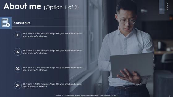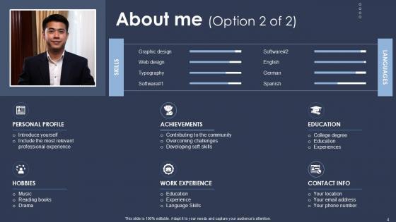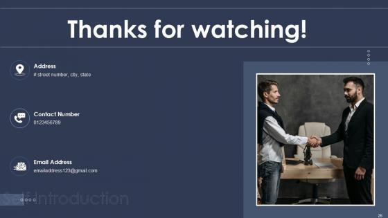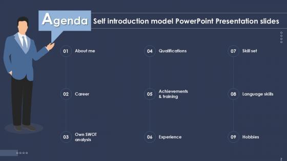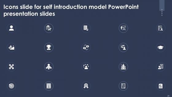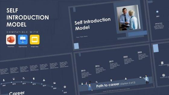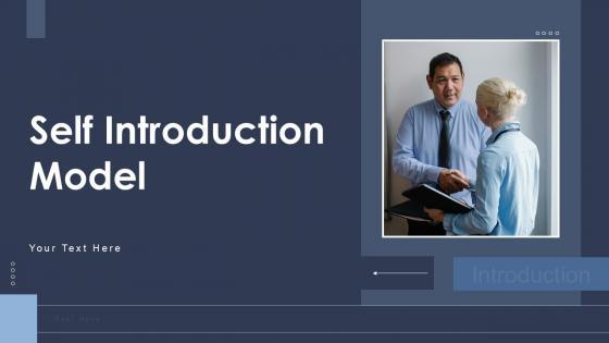 With well-researched insights and carefully-constructed design, this Self Introduction Model Powerpoint Presentation Slides is all that you need for your next business meeting with clients and win them over. Add your data to graphs, charts, and tables that are already ready to display it with stunning visuals and help your audience recall your work. With this PPT Complete Deck, you will be able to display your knowledge of the subject as well as your skills as a communicator. Share your ideas and make an impact on the audience with this PowerPoint Layout and ensure that you are known as a presentation professional. Download this PPT Template Bundle to create the most interesting presentation anyone has ever seen.