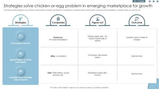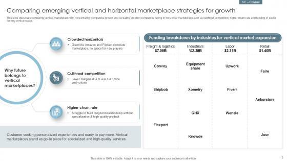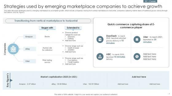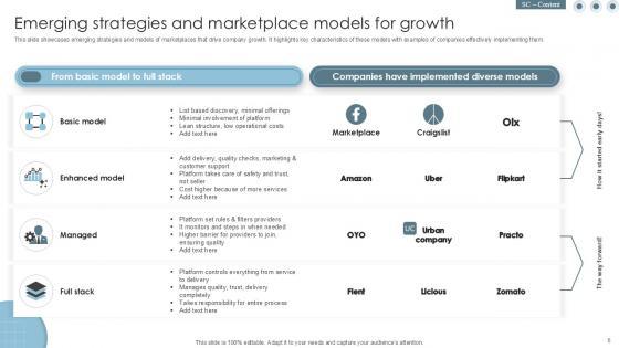 Our team of professional designers has created this Emerging Marketplace Strategies Growth Powerpoint Ppt Template Bundles containing Online Marketplace Strategies,Strategic Approach To Scaling Marketplaces, Scaling Marketplace Strategies, Marketplace Evolution, Marketplace Expansion Tactics professional designs and ready content that is sure to impress your audience. Its features distinguish this presentation deck from the rest of the available in the market. It offers high-quality PPT graphics with value-adding images and interactive elements like bar graphs, pie charts, tables, diagrams, etc. You can easily insert your branding into these entirely customizable PowerPoint slides. With their user-friendly editable design, these presentation templates are ideal for creating a last-minute yet professional presentation. Download this Emerging Marketplace Strategies Growth Powerpoint Ppt Template Bundles for drafting dynamic and engaging designs and slides that will help you close more deals and win more business.