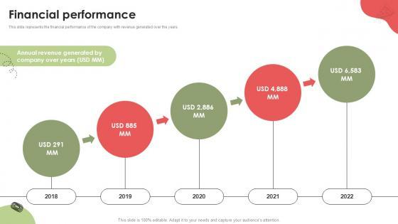 This slide represents the financial performance of the company with revenue generated over the years. Find a pre designed and impeccable Financial Performance Food Delivery Platform Investor Funding Elevator Pitch Deck PPT Sample. The templates can ace your presentation without additional effort. You can download these easy to edit presentation templates to make your presentation stand out from others. So, what are you waiting for Download the template from Slidegeeks today and give a unique touch to your presentation.