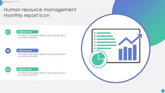 Welcome to our selection of the Human Resource Management Monthly Report Icon PPT Example SS. These are designed to help you showcase your creativity and bring your sphere to life. Planning and Innovation are essential for any business that is just starting out. This collection contains the designs that you need for your everyday presentations. All of our PowerPoints are 100Percent editable, so you can customize them to suit your needs. This multi-purpose template can be used in various situations. Grab these presentation templates today.