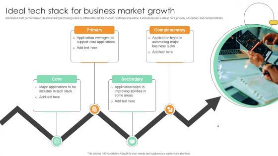 Mentioned slide demonstrated ideal marketing technology stack by different layers for modern customer acquisition. It includes layers such as core, primary, secondary, and complementary. Find a pre-designed and impeccable Ideal Tech Stack For Business Market Growth Comprehensive Guide For Marketing Technology. The templates can ace your presentation without additional effort. You can download these easy-to-edit presentation templates to make your presentation stand out from others. So, what are you waiting for Download the template from Slidegeeks today and give a unique touch to your presentation.