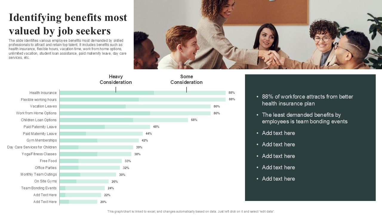 The slide identifies various employee benefits most demanded by skilled professionals to attract and retain top talent. It includes benefits such as health insurance, flexible hours, vacation time, work from home options, unlimited vacation, student loan assistance, paid maternity leave, day care services, etc. Formulating a presentation can take up a lot of effort and time, so the content and message should always be the primary focus. The visuals of the PowerPoint can enhance the presenters message, so our Identifying Benefits Most Valued By Job Seekers Themes PDF was created to help save time. Instead of worrying about the design, the presenter can concentrate on the message while our designers work on creating the ideal templates for whatever situation is needed. Slidegeeks has experts for everything from amazing designs to valuable content, we have put everything into Identifying Benefits Most Valued By Job Seekers Themes PDF