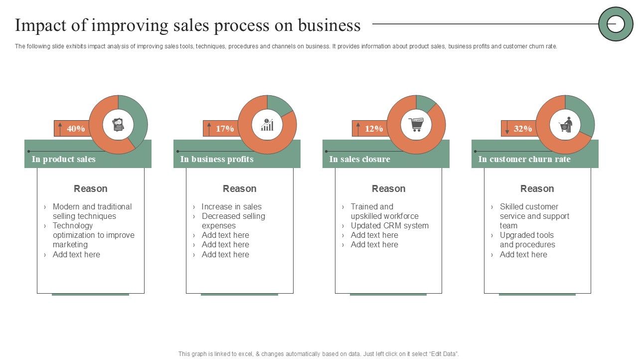 The following slide exhibits impact analysis of improving sales tools, techniques, procedures and channels on business. It provides information about product sales, business profits and customer churn rate. Crafting an eye catching presentation has never been more straightforward. Let your presentation shine with this tasteful yet straightforward Impact Of Improving Sales Process On Business Topics PDF template. It offers a minimalistic and classy look that is great for making a statement. The colors have been employed intelligently to add a bit of playfulness while still remaining professional. Construct the ideal Impact Of Improving Sales Process On Business Topics PDF that effortlessly grabs the attention of your audience Begin now and be certain to wow your customers.