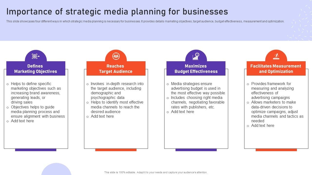 Importance Of Strategic Media Planning For Businesses Ppt PowerPoint Presentation Diagram Templates PDF