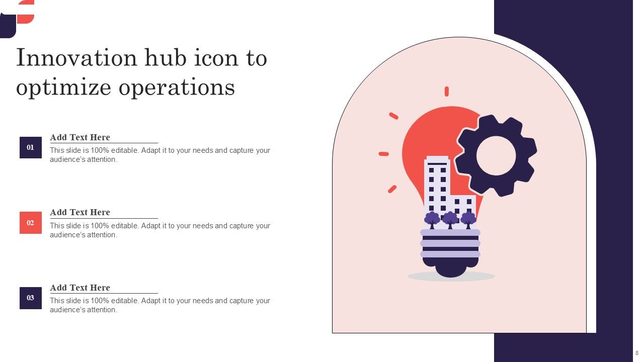 This Innovation Hub Ppt PowerPoint Presentation Complete Deck With Slides acts as backup support for your ideas, vision, thoughts, etc. Use it to present a thorough understanding of the topic. This PPT slideshow can be utilized for both in-house and outside presentations depending upon your needs and business demands. Entailing nine slides with a consistent design and theme, this template will make a solid use case. As it is intuitively designed, it suits every business vertical and industry. All you have to do is make a few tweaks in the content or any other component to design unique presentations. The biggest advantage of this complete deck is that it can be personalized multiple times once downloaded. The color, design, shapes, and other elements are free to modify to add personal touches. You can also insert your logo design in this PPT layout. Therefore a well-thought and crafted presentation can be delivered with ease and precision by downloading this Innovation Hub Ppt PowerPoint Presentation Complete Deck With Slides PPT slideshow.
