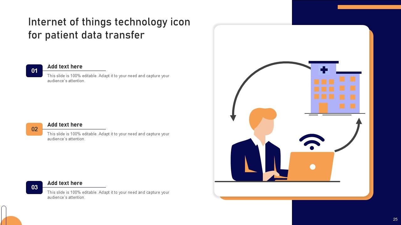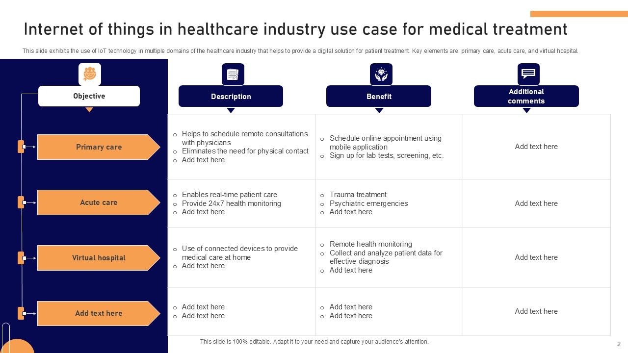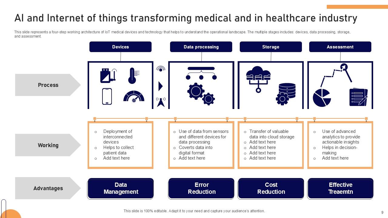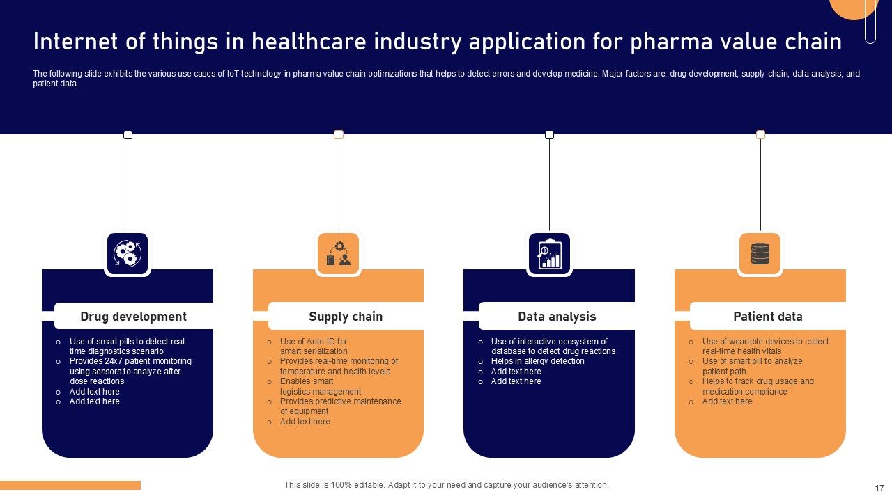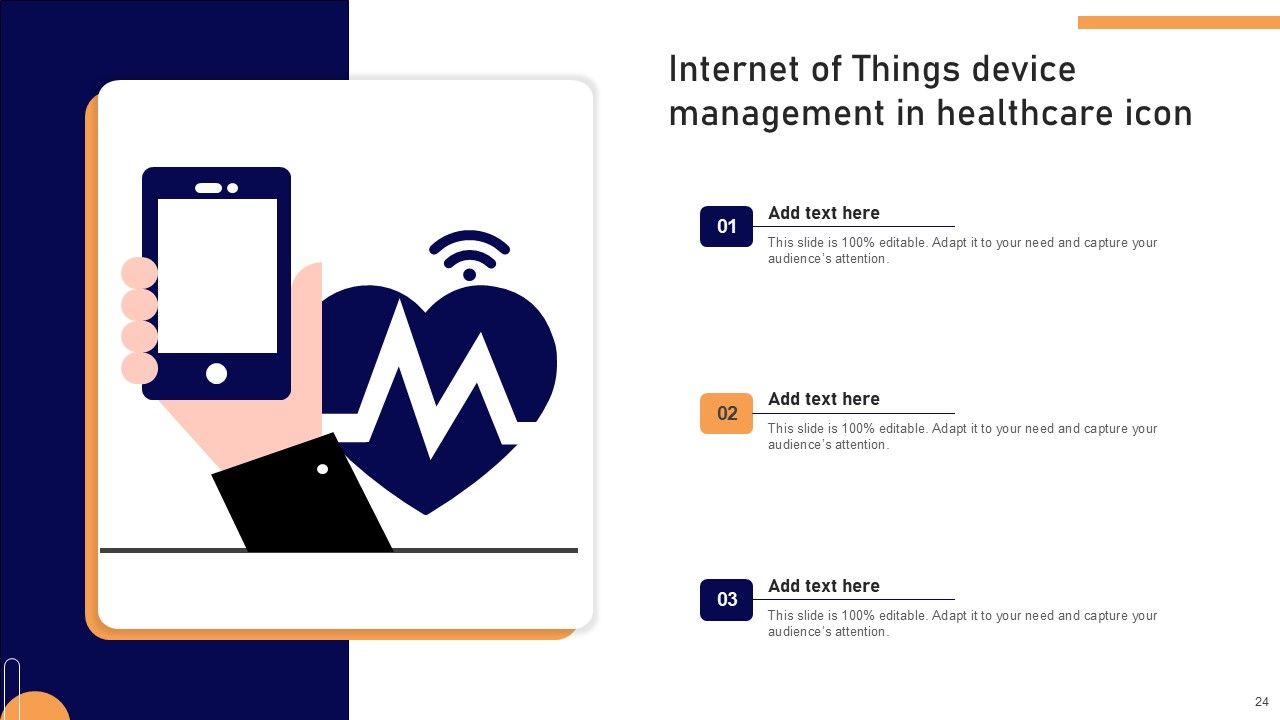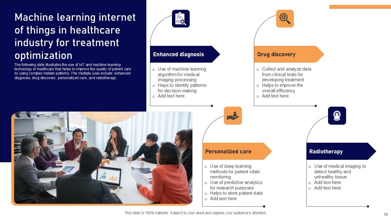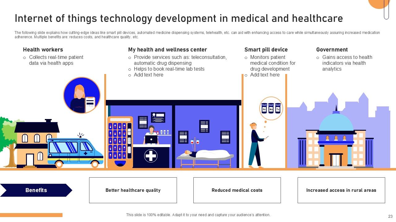 This Internet Of Things In Healthcare Industry Ppt PowerPoint Presentation Complete Deck With Slides acts as backup support for your ideas, vision, thoughts, etc. Use it to present a thorough understanding of the topic. This PPT slideshow can be utilized for both in-house and outside presentations depending upon your needs and business demands. Entailing thirty one slides with a consistent design and theme, this template will make a solid use case. As it is intuitively designed, it suits every business vertical and industry. All you have to do is make a few tweaks in the content or any other component to design unique presentations. The biggest advantage of this complete deck is that it can be personalized multiple times once downloaded. The color, design, shapes, and other elements are free to modify to add personal touches. You can also insert your logo design in this PPT layout. Therefore a well-thought and crafted presentation can be delivered with ease and precision by downloading this Internet Of Things In Healthcare Industry Ppt PowerPoint Presentation Complete Deck With Slides PPT slideshow.