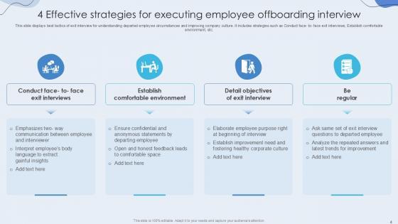 You will save yourself your energy and hours of time when you choose to use this impactful PowerPoint Deck. This Employee Offboarding Interview Powerpoint Ppt Template Bundles has been tailor-made to your business needs which ensures that you will always be prepared for that next meeting. Worry can not touch you when you present in your area of expertise using this PPT Template Bundle. With a modern design and easy to follow structure, this PowerPoint Presentation has Employee Exit Interview, Staff Offboarding Interview, Departure Interview, Exit Feedback Interview, Employee Separation Interview-slides, which ensures that you can cover you need to without much work. Create your next presentation using this PPT Theme to deliver a memorable performance.