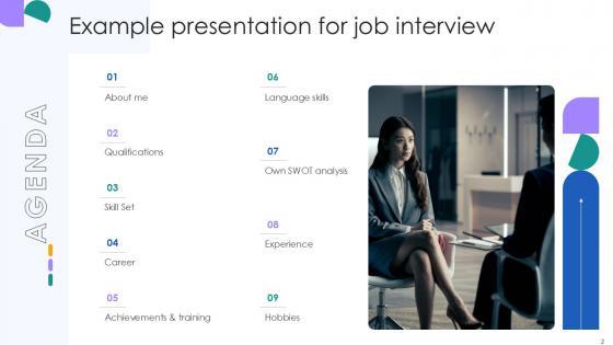 You will save yourself your energy and hours of time when you choose to use this impactful PowerPoint Deck. This Example Presentation For Job Interview Powerpoint Presentation Slides has been tailor-made to your business needs which ensures that you will always be prepared for that next meeting. Worry can not touch you when you present in your area of expertise using this PPT Template Bundle. With a modern design and easy to follow structure, this PowerPoint Presentation has Professional Self Introduction, Achievements, Example Presentation For Job Interview, Job Marketing, Job Promotion-slides, which ensures that you can cover you need to without much work. Create your next presentation using this PPT Theme to deliver a memorable performance.