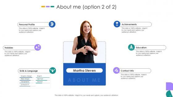This Introduce Yourself In Job Interview Powerpoint Presentation Slides is designed to help you retain your audiences attention. This content-ready PowerPoint Template enables you to take your audience on a journey and share information in a way that is easier to recall. It helps you highlight the crucial parts of your work so that the audience does not get saddled with information download. This Business Skill, Professional Expertise, About Me, Interview Presentation-slide PPT Deck comes prepared with the graphs and charts you could need to showcase your information through visuals. You only need to enter your own data in them. Download this editable PowerPoint Theme and walk into that meeting with confidence.