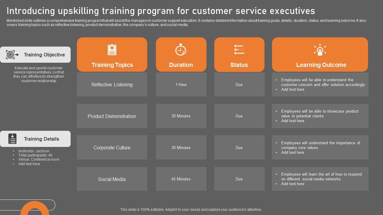 Introducing Upskilling Training Program For Customer Service Executives Guidelines PDF with all 9 slides: