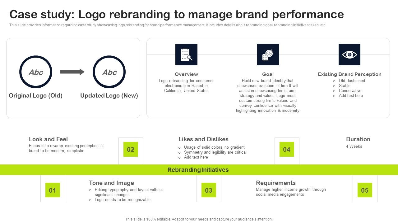 This slide provides information regarding case study showcasing logo rebranding for brand performance management. It includes details about rebranding goal, rebranding initiatives taken, etc. If your project calls for a presentation, then Slidegeeks is your go-to partner because we have professionally designed, easy-to-edit templates that are perfect for any presentation. After downloading, you can easily edit Key Elements Of Strategic Brand Administration Case Study Logo Rebranding To Manage Brand Performance Elements PDF and make the changes accordingly. You can rearrange slides or fill them with different images. Check out all the handy templates