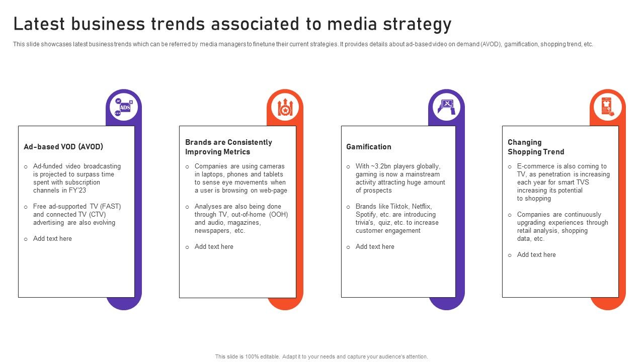 Latest Business Trends Associated To Media Strategy Ppt PowerPoint Presentation File Background Images PDF with all 9 slides: