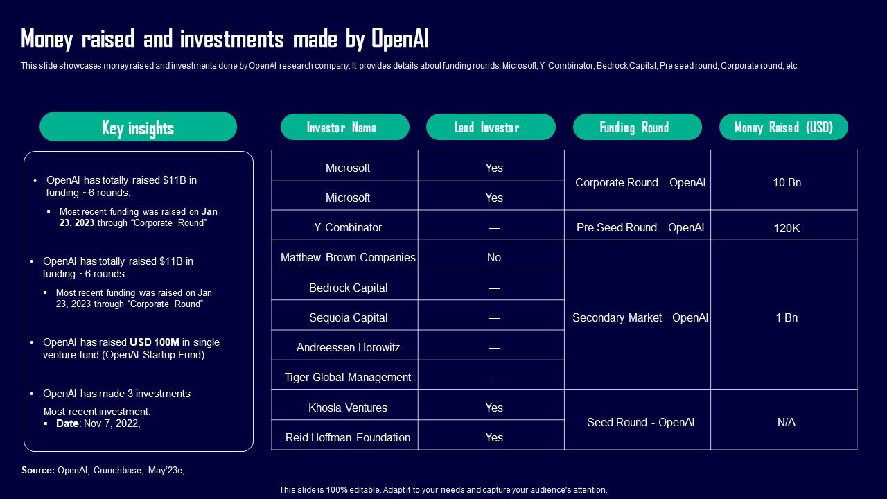 Leveraging Openai API For Business Money Raised And Investments Made By Openai Guidelines PDF