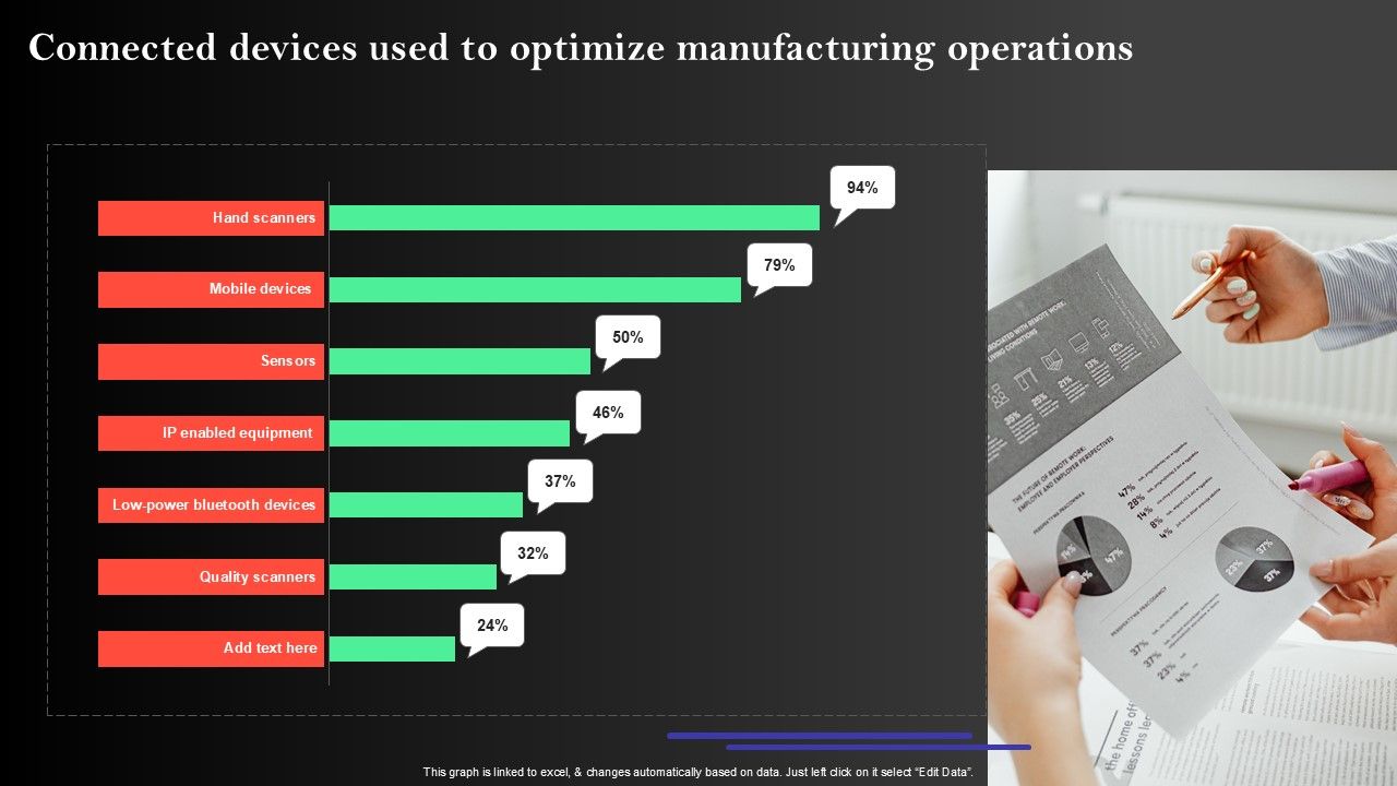 Presenting this PowerPoint presentation, titled Manufacturing Operations Management Process Connected Devices Used To Optimize Sample PDF, with topics curated by our researchers after extensive research. This editable presentation is available for immediate download and provides attractive features when used. Download now and captivate your audience. Presenting this Manufacturing Operations Management Process Connected Devices Used To Optimize Sample PDF. Our researchers have carefully researched and created these slides with all aspects taken into consideration. This is a completely customizable Manufacturing Operations Management Process Connected Devices Used To Optimize Sample PDF that is available for immediate downloading. Download now and make an impact on your audience. Highlight the attractive features available with our PPTs.
