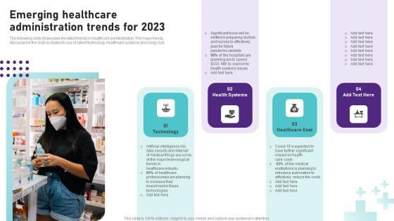 Crafting an eye-catching presentation has never been more straightforward. Let your presentation shine with this tasteful yet straightforward Emerging Healthcare Administration Trends For 2023 Operational Areas Healthcare Diagrams PDF template. It offers a minimalistic and classy look that is great for making a statement. The colors have been employed intelligently to add a bit of playfulness while still remaining professional. Construct the ideal Emerging Healthcare Administration Trends For 2023 Operational Areas Healthcare Diagrams PDF that effortlessly grabs the attention of your audience Begin now and be certain to wow your customers