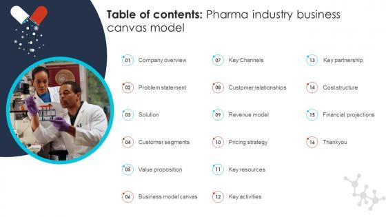 If you are looking for a format to display your unique thoughts, then the professionally designed Table Of Contents Pharma Industry Business Canvas Model BMC SS V is the one for you. You can use it as a Google Slides template or a PowerPoint template. Incorporate impressive visuals, symbols, images, and other charts. Modify or reorganize the text boxes as you desire. Experiment with shade schemes and font pairings. Alter, share or cooperate with other people on your work. Download Table Of Contents Pharma Industry Business Canvas Model BMC SS V and find out how to give a successful presentation. Present a perfect display to your team and make your presentation unforgettable.