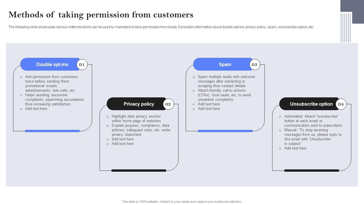 Methods Of Taking Permission From Customers Ppt PowerPoint Presentation File Infographic Template PDF