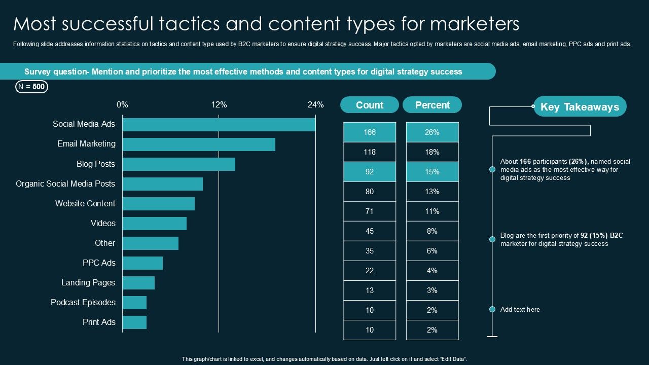 Following slide addresses information statistics on tactics and content type used by B2C marketers to ensure digital strategy success. Major tactics opted by marketers are social media ads, email marketing, PPC ads and print ads. Make sure to capture your audiences attention in your business displays with our gratis customizable Most Successful Tactics And Content Types For Marketers Guidelines PDF. These are great for business strategies, office conferences, capital raising or task suggestions. If you desire to acquire more customers for your tech business and ensure they stay satisfied, create your own sales presentation with these plain slides.