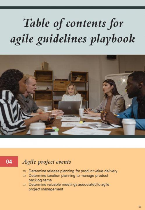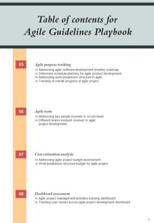 Elevate your presentations to the next level with our Agile Guidelines Playbook Template. Our templates are designed to help you deliver professional presentations with ease. With 100 percent editable slides and visually-stunning graphics, you will be able to customize each template to fit your unique needs. Impress your audience and get the results you want with our A4 Playbook PPT Template.