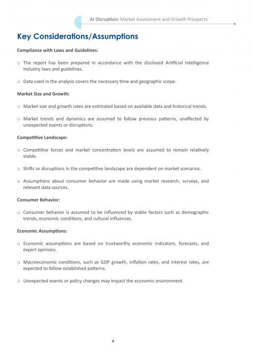 This AI Disruption Market Assessment And Growth Prospects Pdf Word Document is a primer on how to capitalize on business opportunities through planning, innovation, and market intelligence. The content-ready format of the complete deck will make your job as a decision-maker a lot easier. Use this ready-made PowerPoint Template to help you outline an extensive and legible plan to capture markets and grow your company on the right path, at an exponential pace. What is even more amazing is that this presentation is completely editable and 100 percent customizable. This seventy six slide complete deck helps you impress a roomful of people with your expertise in business and even presentation. Craft such a professional and appealing presentation for that amazing recall value. Download now.
