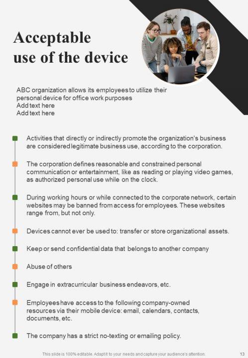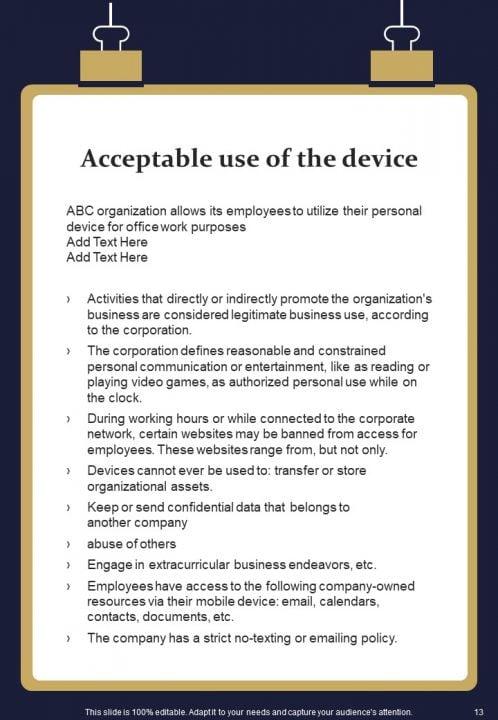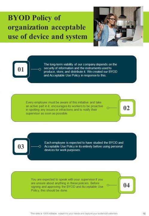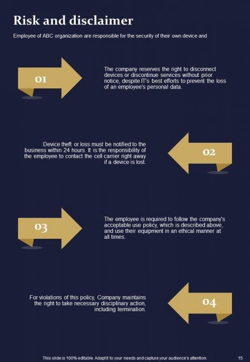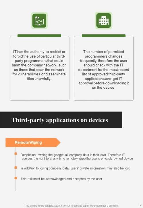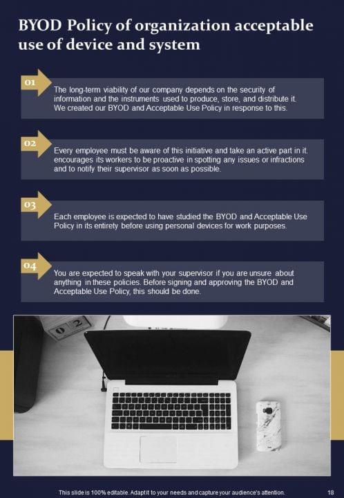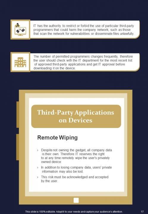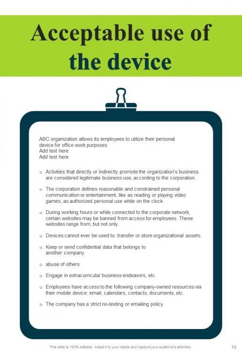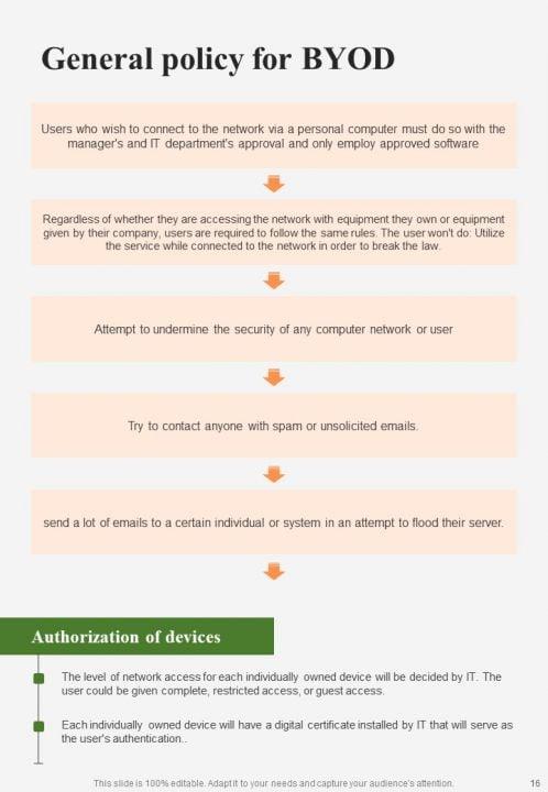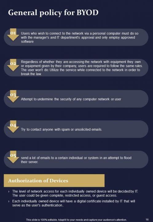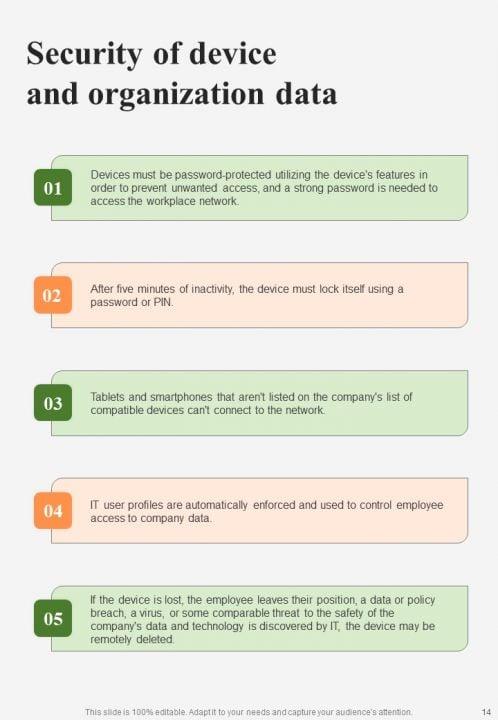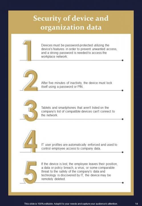 Elevate your handbooks with our versatile BYOD Workplace Guidelines For Staff And Company Handbook PPT Template. Craft visually-stunning and informative handbooks effortlessly. Our 100 percent editable template ensures flexibility while our design experts have curated the perfect content. Say goodbye to time-consuming manual work, simply personalize the template to suit your needs. Transform your handbook into a captivating masterpiece today.